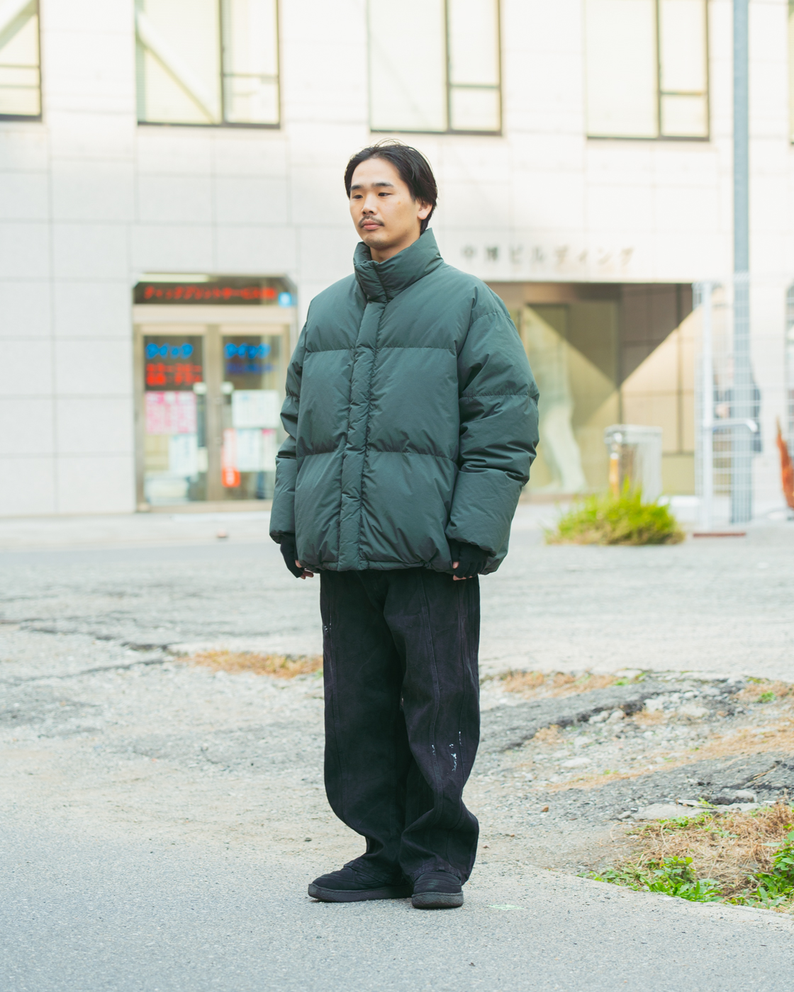 まずは、Graphpaperの存在感あるダウンジャケットを使ったスタイリングです。