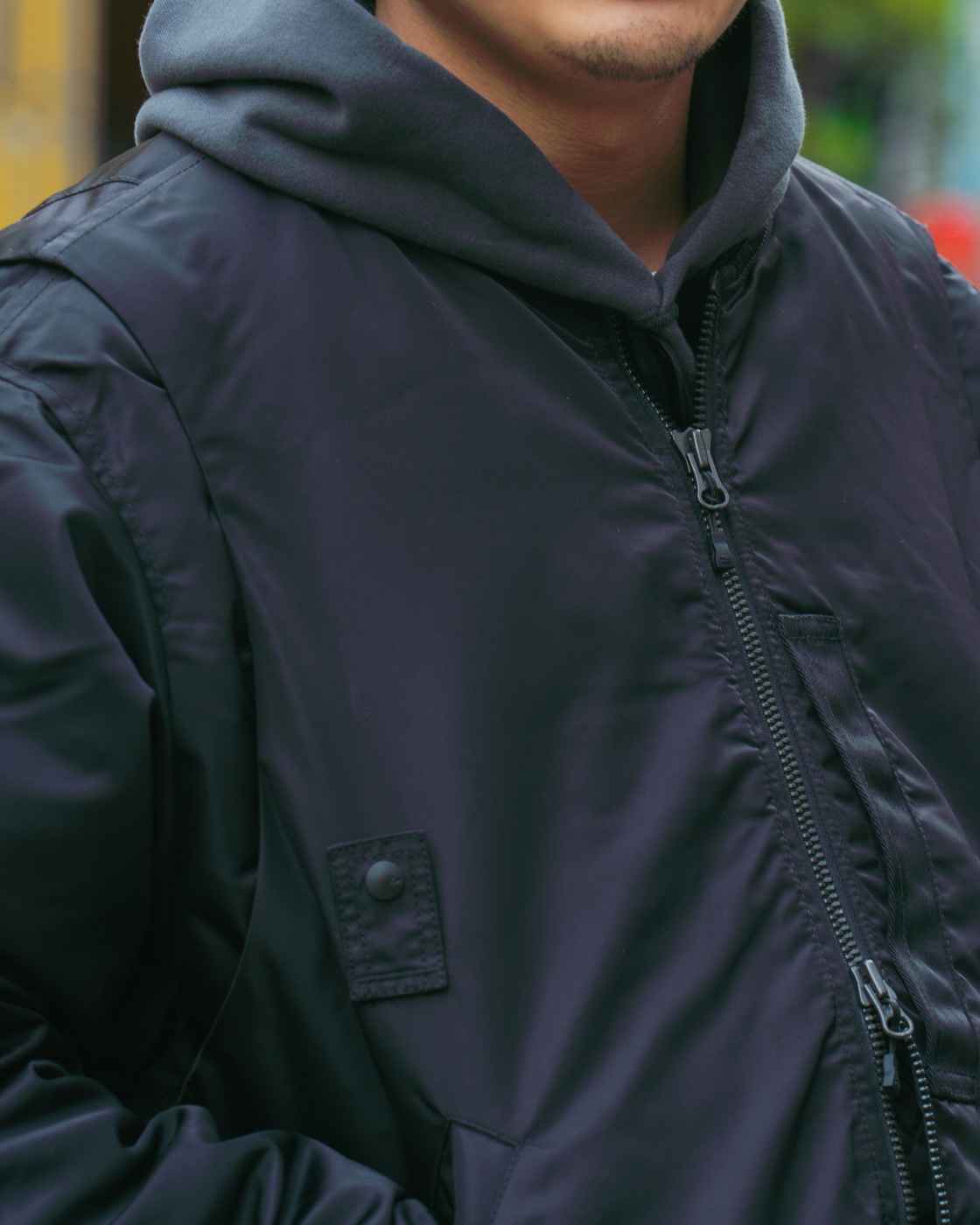 フライトジャケットらしい無骨さを残しつつ、DAIWA PIER39らしい機能性と都会的なムードへとアップデートされた1着です。